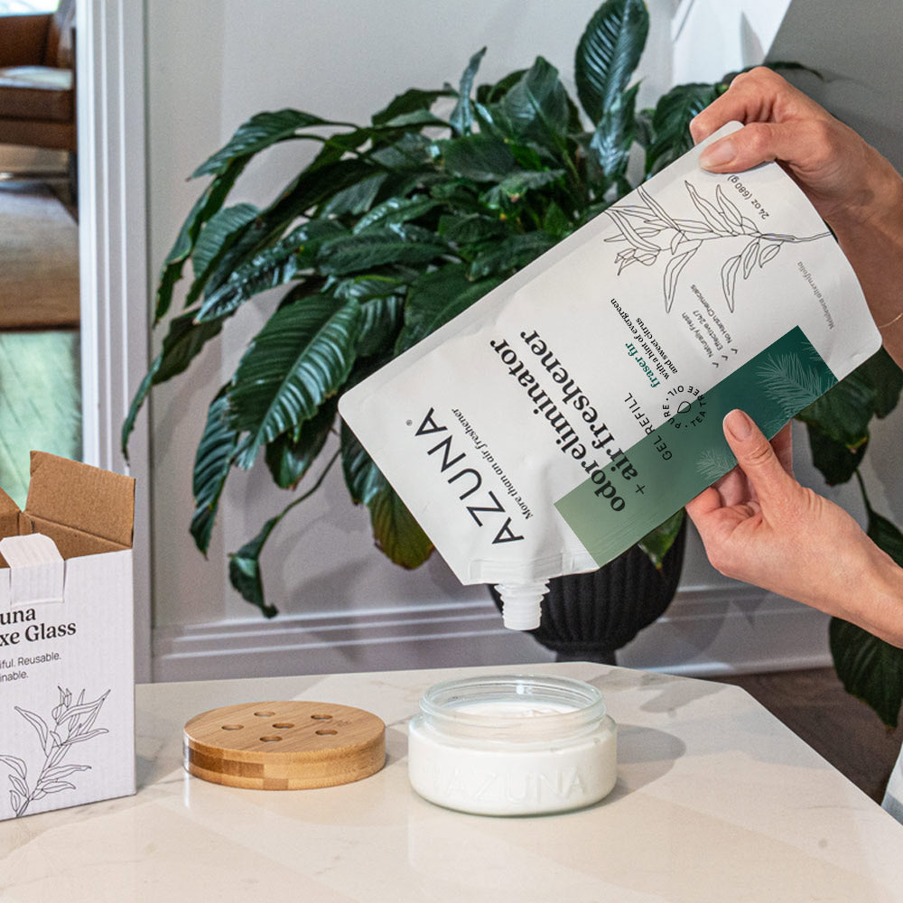 Because our gel is plant-powered, disposal is simple. Scoop out your old gel using a spoon or paper towel, then toss in the trash. A quick wipe of your empty jar with a fresh paper towel is all you need to prepare for an immediate refill.