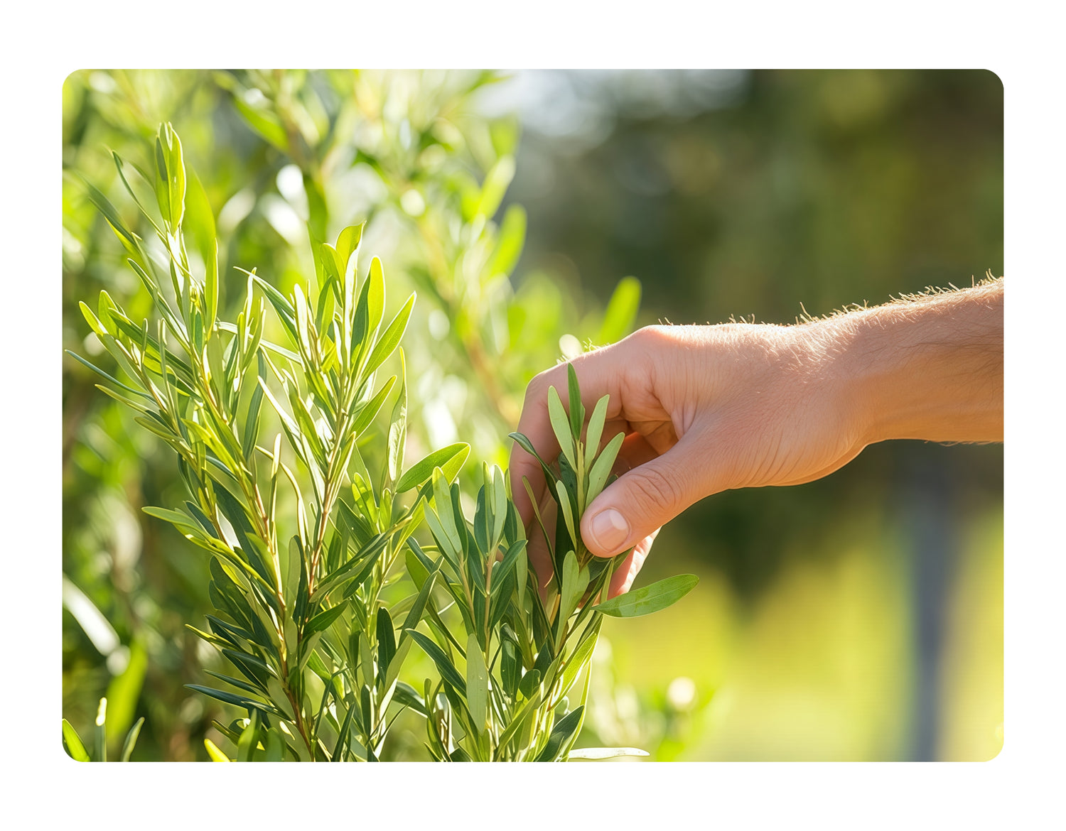 Tea tree oil (melaleuca oil, if you want to get scientific) is derived from the leaves of the Australian tea tree plant. It’s known for its odor eliminating, air purifying, and cleaning properties.